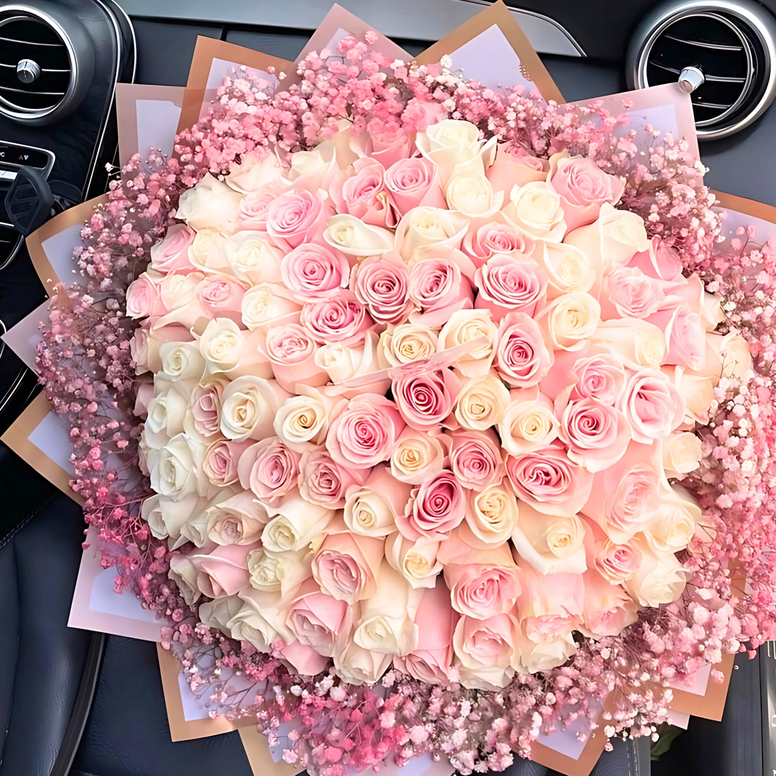 100 Elegant Pink & White Roses in Be Mine