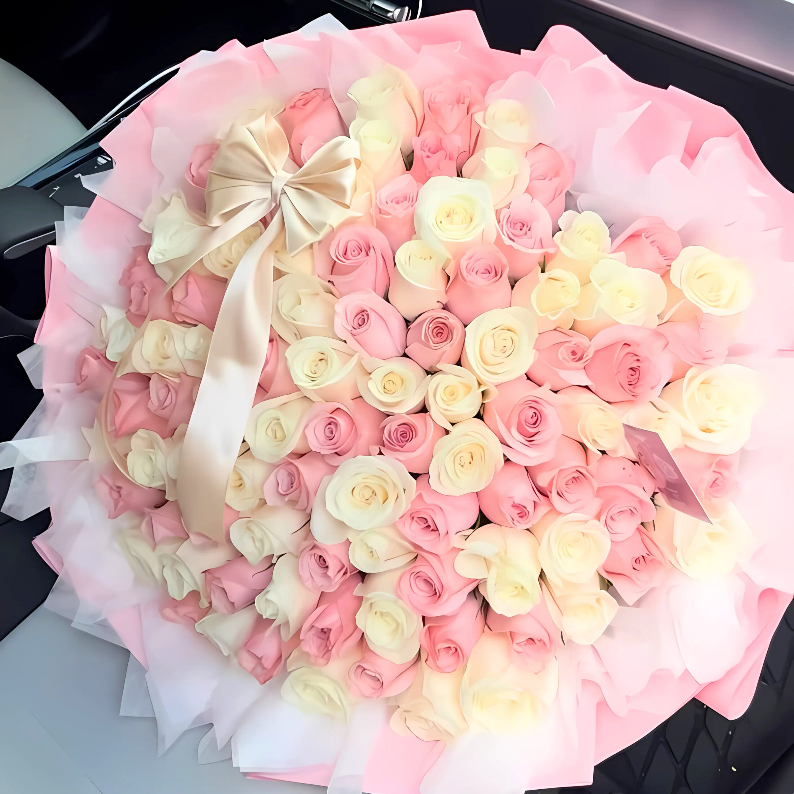 100 White, Red & Pink Roses in My Sweet love
