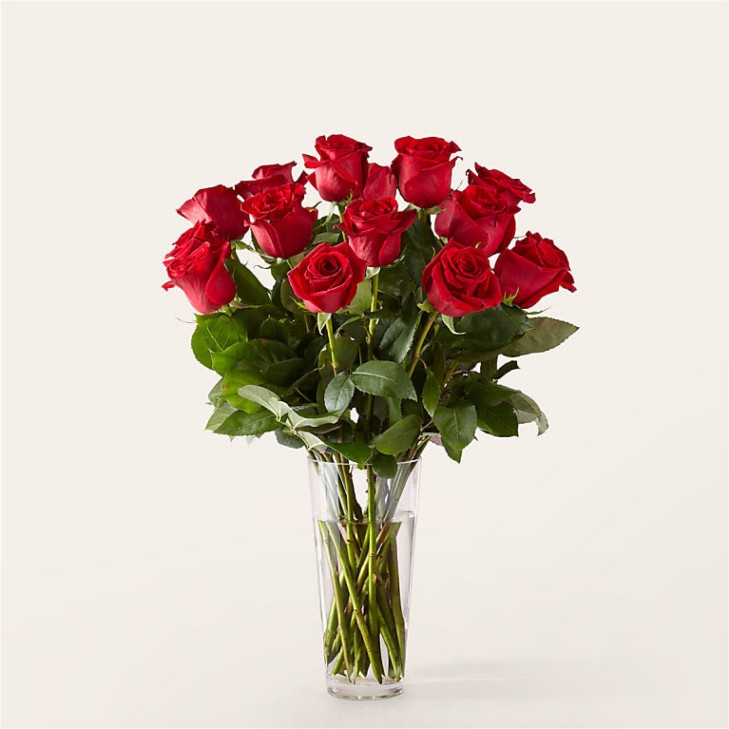 12 Long Stem Red Roses with Vase