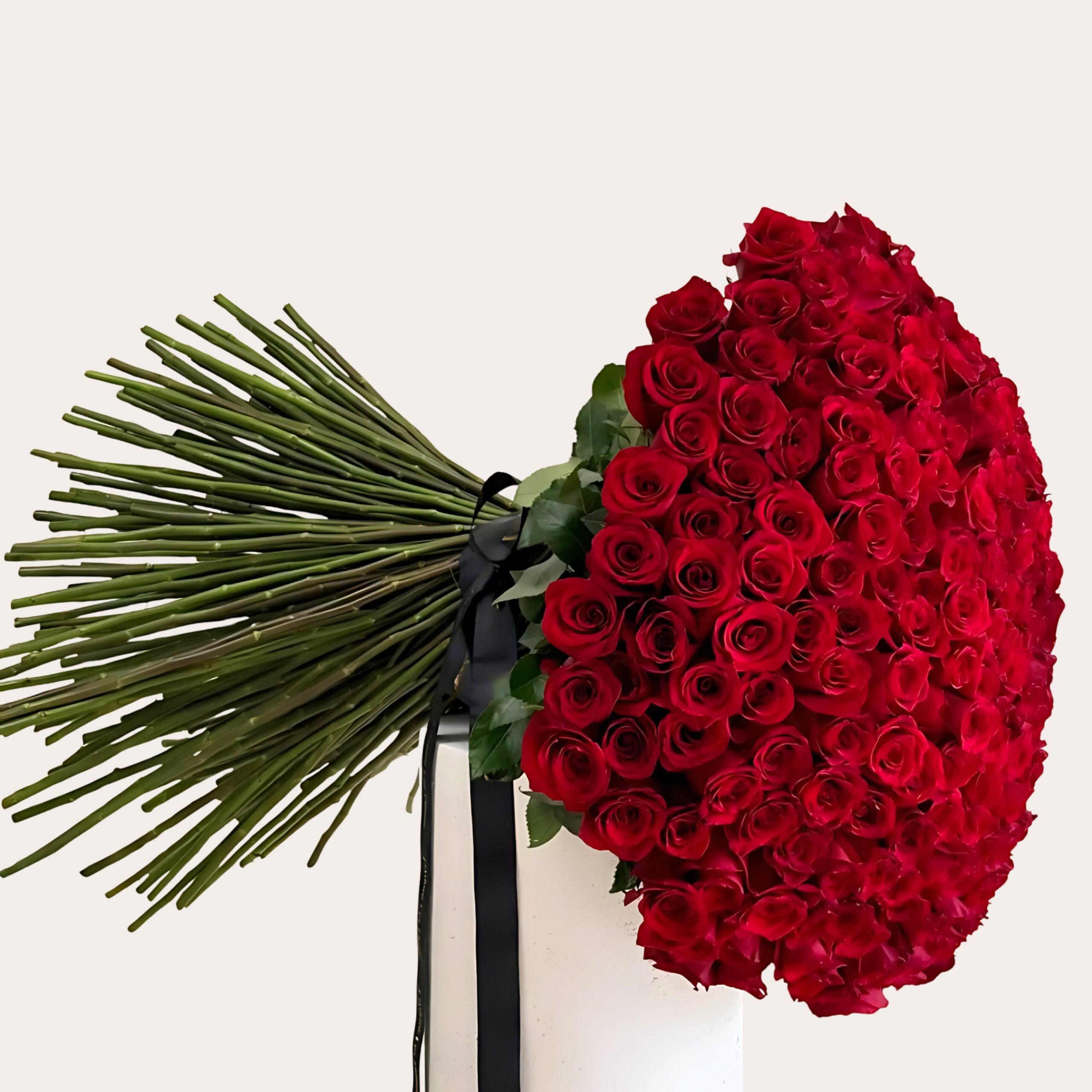 TREE – 60 Roses with Leaves & Stem – Black Tall Box