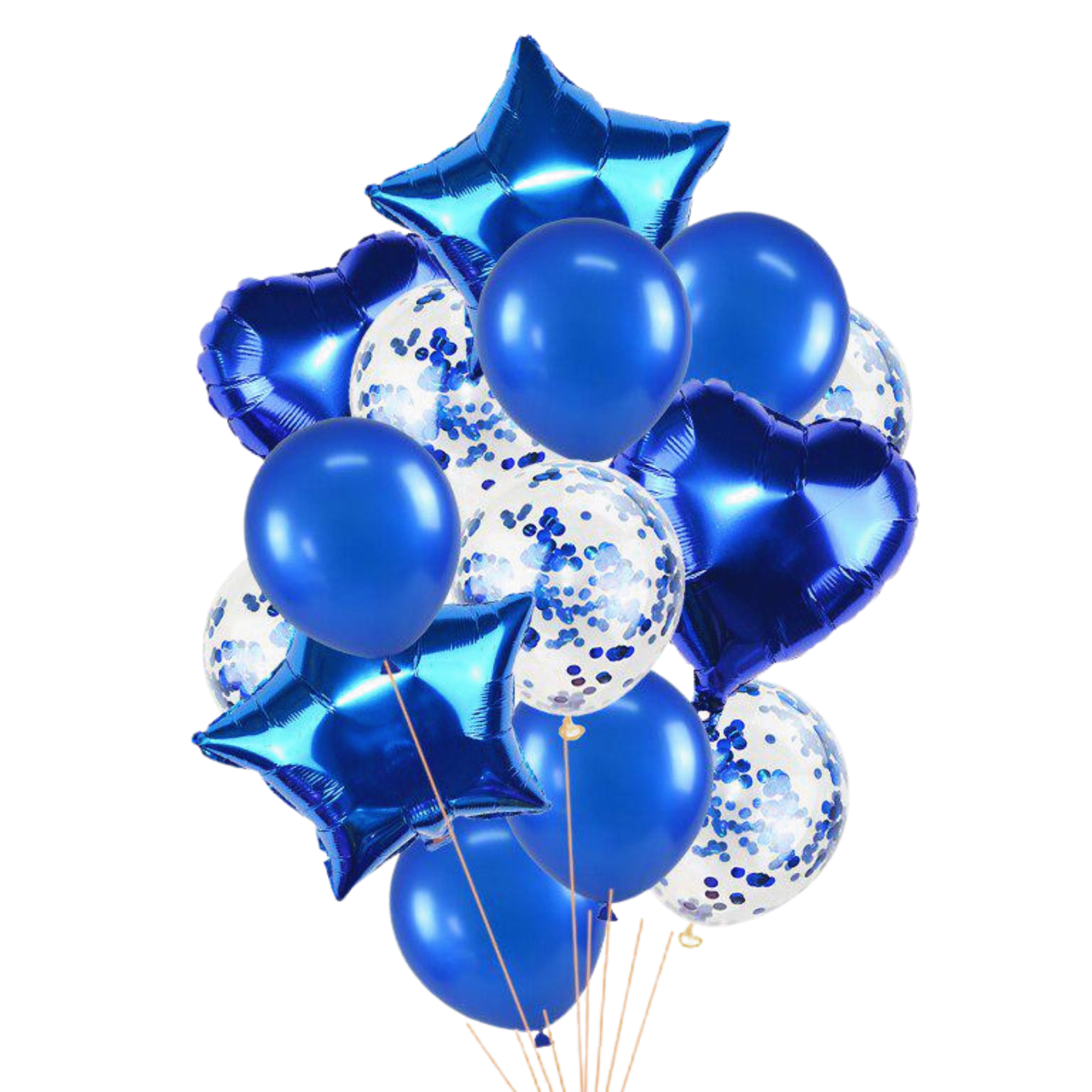 14 pcs Confetti, Heart, Star & Foil Latex Balloons | Blue