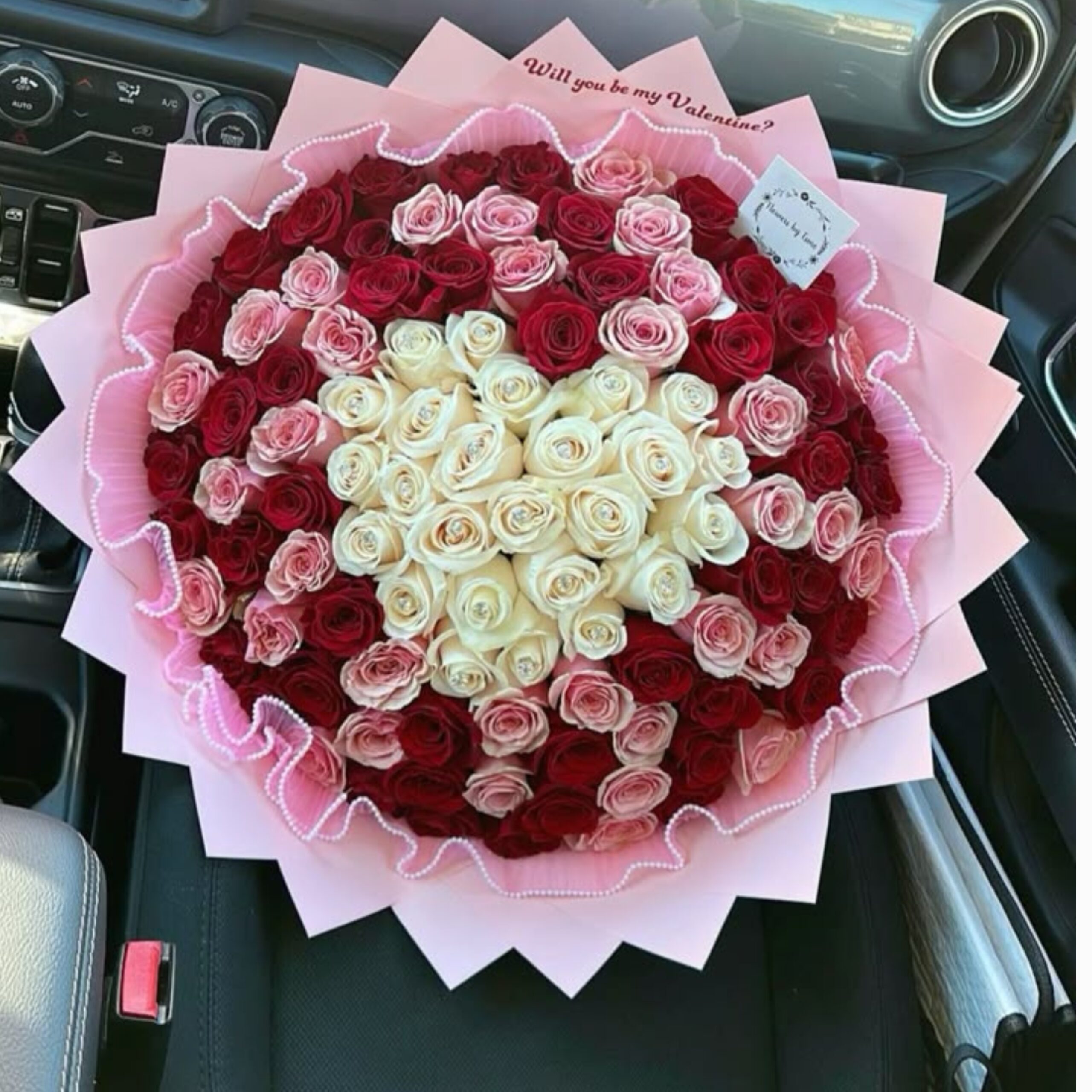 100 Pink & Purple Roses in Love Note